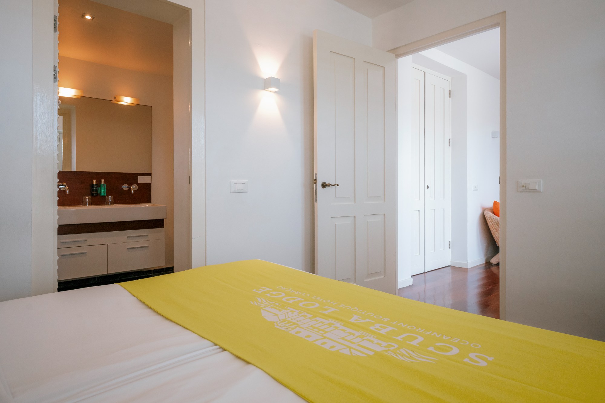 De 1-slaapkamer suite beschikt over dezelfde faciliteiten als onze kamers maar is ruimer opgezet met een apart woongedeelte en keuken. De slaapkamer heeft een king-size bed, airco, en flatscreen televisie. De moderne badkamer is uitgerust met een stortdouche, toilet en wastafel.