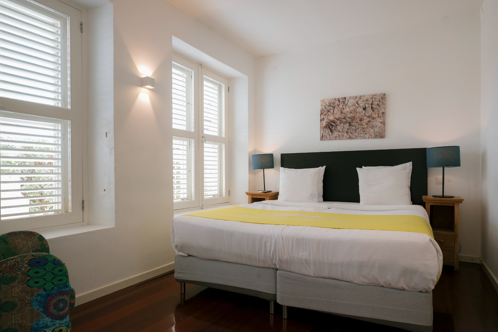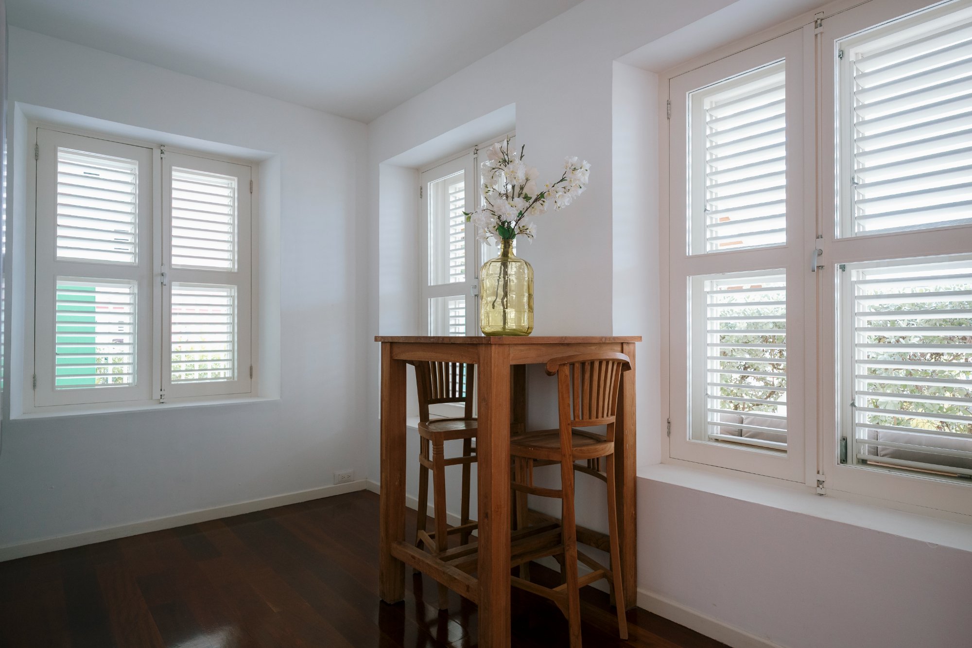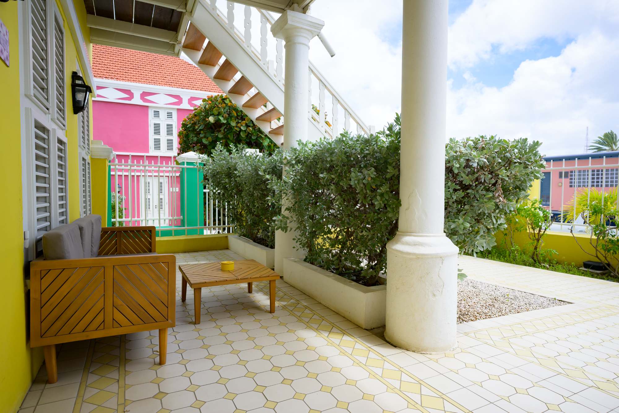 De 1-slaapkamer suite is gelegen aan de stadszijde met uitzicht op de tuin en de sfeervolle wijk Pietermaai.