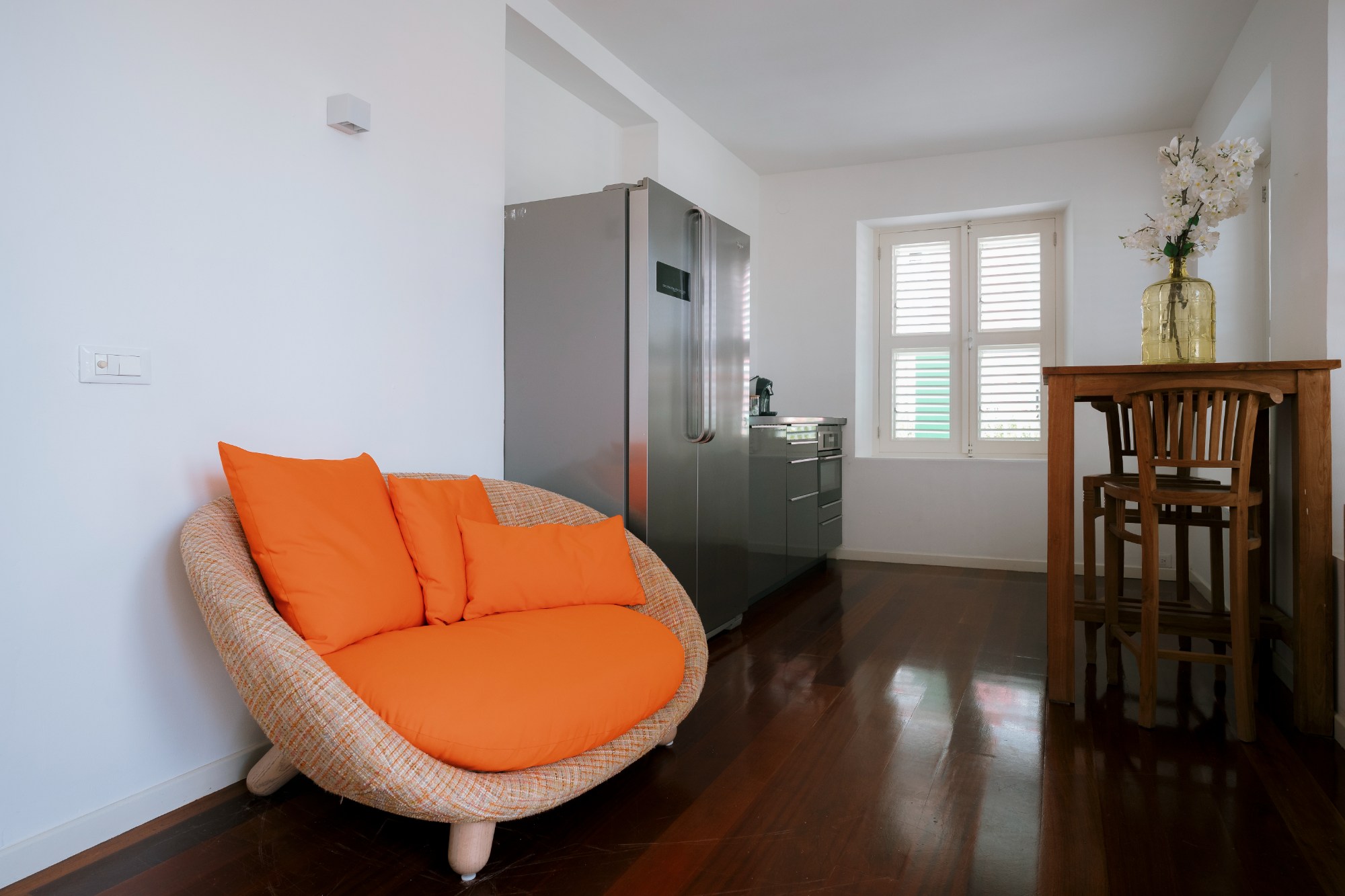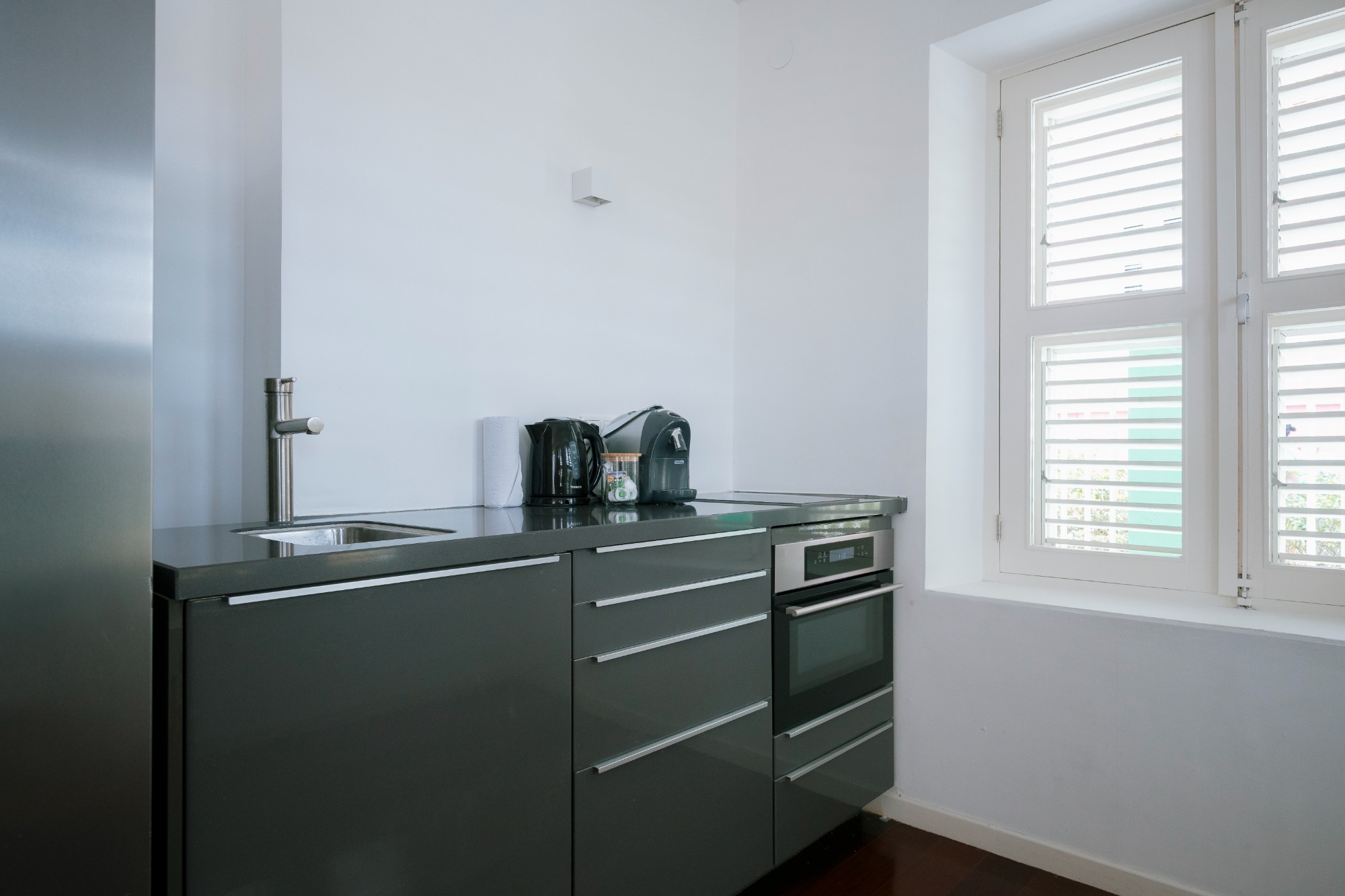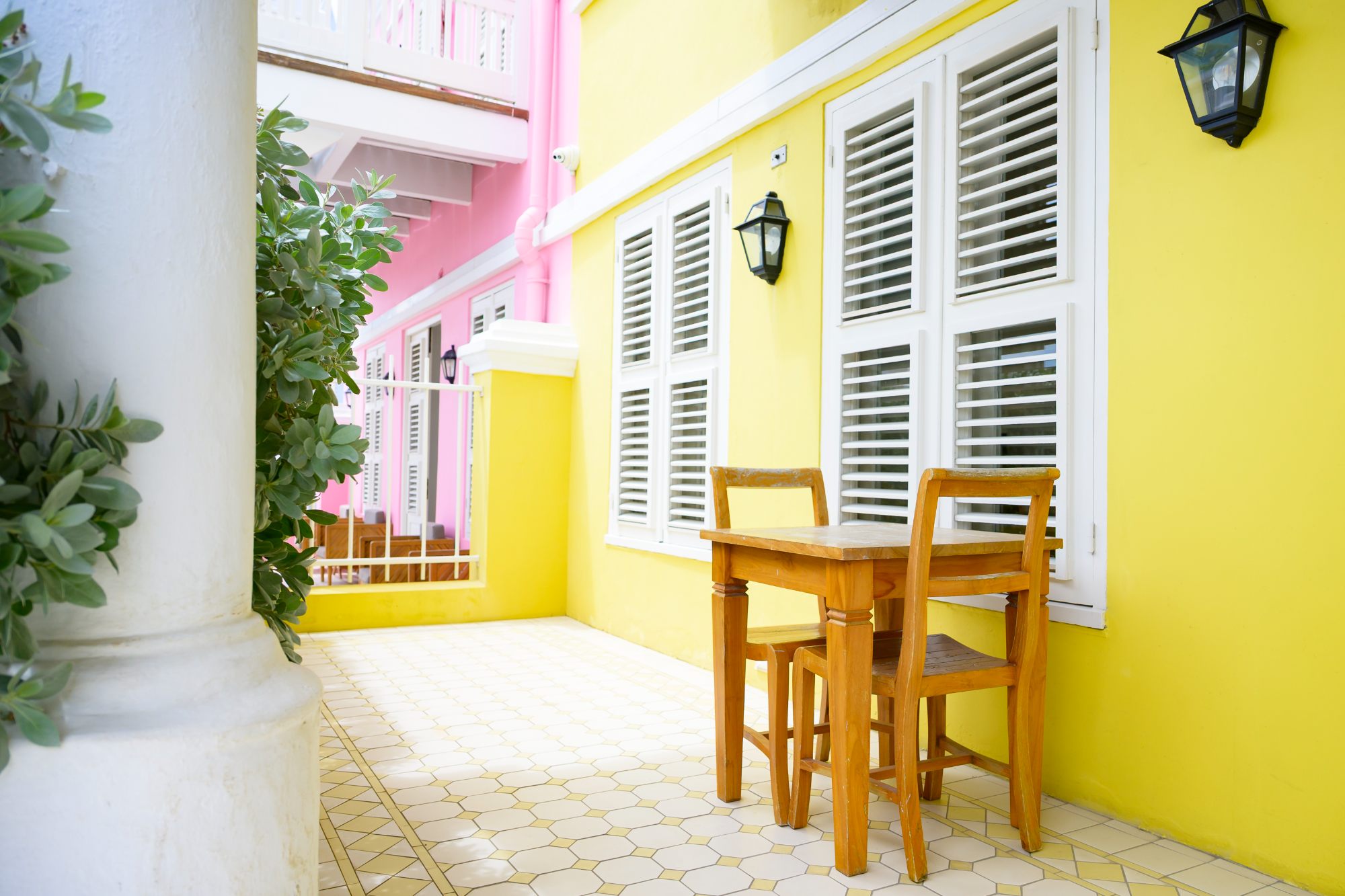 De 1-slaapkamer suite is gelegen aan de stadszijde met uitzicht op de tuin en de sfeervolle wijk Pietermaai.