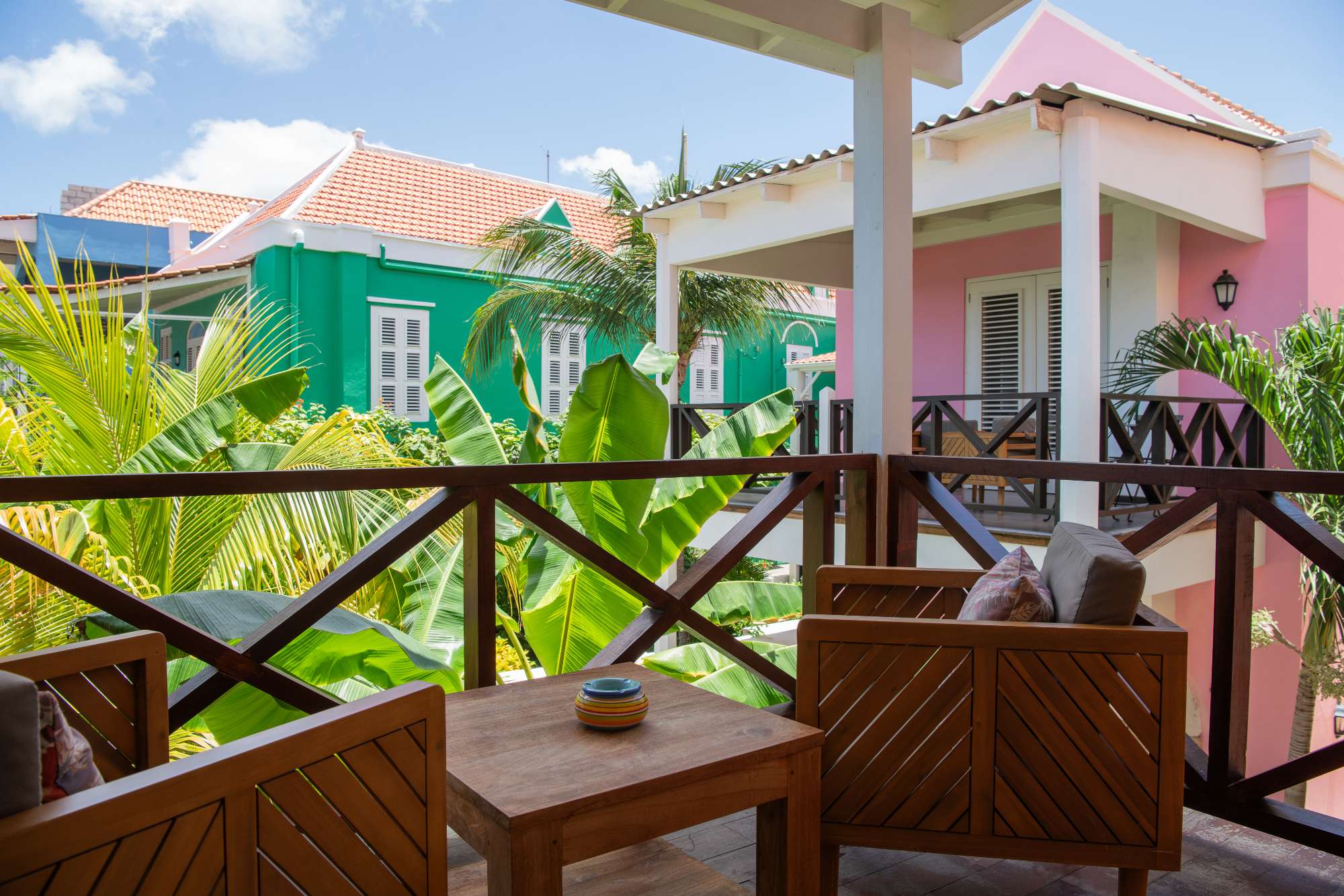 Bona Vista presenta una amplia y moderna habitación abuhardillada donde podrás admirar el mar desde tu balcón, con vistas a los pintorescos tejados de Curaçao.