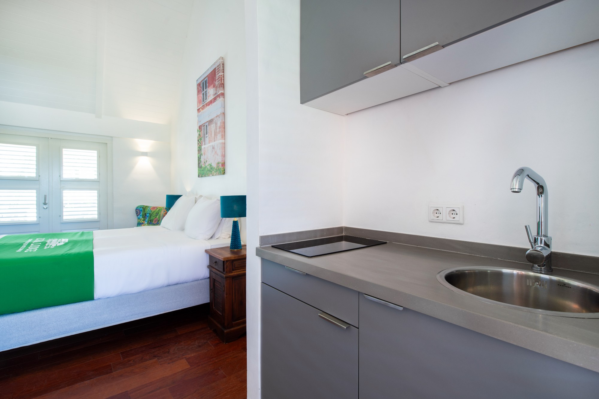 Nuestras habitaciones deluxe con vistas al mar ofrecen las mismas comodidades excepcionales que nuestras habitaciones estándar, incluyendo una lujosa cama king-size, un baño contemporáneo con una refrescante ducha de lluvia, una nevera, facilidades para preparar café y té, aire acondicionado eficiente, un ventilador de techo y una caja fuerte para resguardar tus objetos de valor. Además, estas habitaciones cuentan con una encantadora kitchenette y un balcón privado que se abre a las cautivadoras vistas al mar, brindando una experiencia inolvidable.